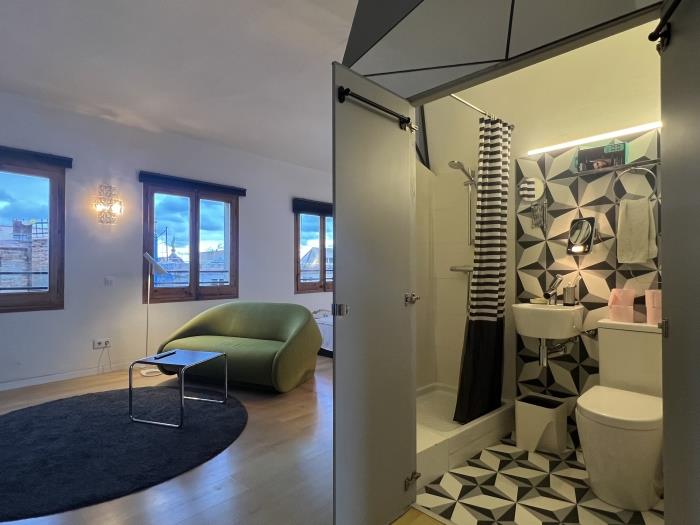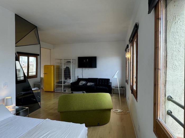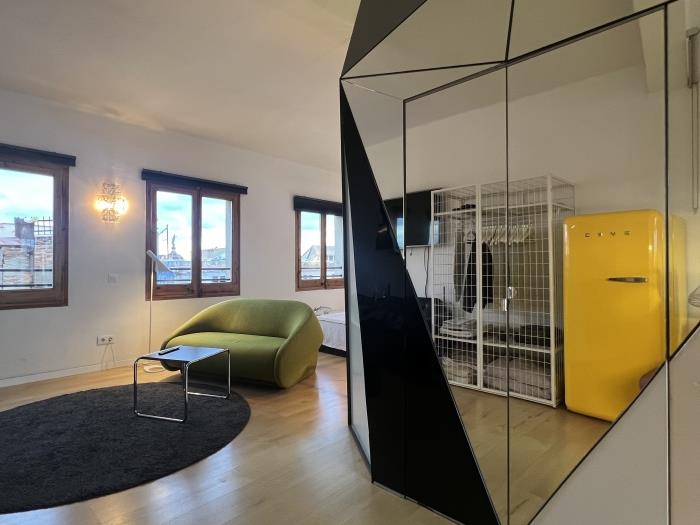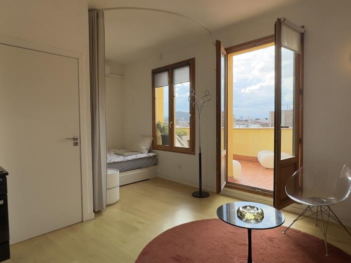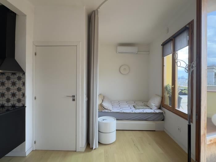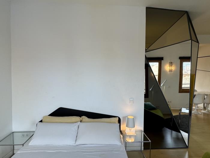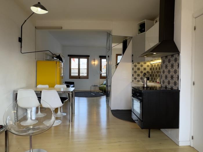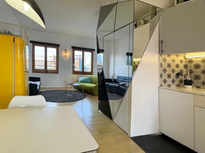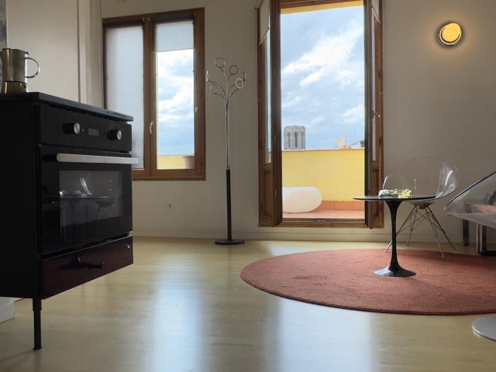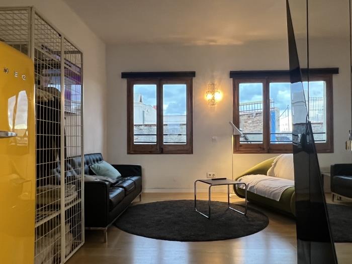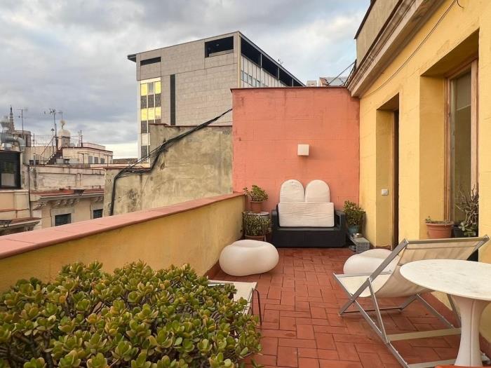 Vive la esencia del Barrio Gótico desde este espectacular ático reformado de 75 m², donde la historia y el confort moderno se encuentran. Con dos habitaciones tipo lofts acogedores, un baño completo y un salón con sofá cama, este apartamento es ideal para relajarte y disfrutar de la ciudad. La cocina totalmente equipada te permite preparar tus platos favoritos, mientras que la terraza privada amueblada se convierte en el lugar perfecto para desayunar bajo el sol, cenar al aire libre o simplemente relajarte con el clima mediterráneo. Equipado con aire acondicionado, calefacción, Smart TV, escritorio para teletrabajo, lavadora en la terraza, ropa de cama y toallas incluidas, todo está pensado para que tu estancia sea cómoda y sin preocupaciones. Ubicado en la Calle Cervantes, en un edificio con ascensor, este ático ofrece la combinación perfecta de ubicación, estilo y funcionalidad, ideal tanto para estancias cortas como largas en el corazón de Barcelona.